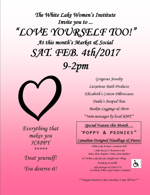 ALL of this will be at the White Lake Women's Institute Hall located at 7 John Box St @ Burnstown Rd (Only 10 minutes from Arnprior and 20 minutes from Renfrew 417/White Lake Rd exit, Straight into Village Handicap Accessible).