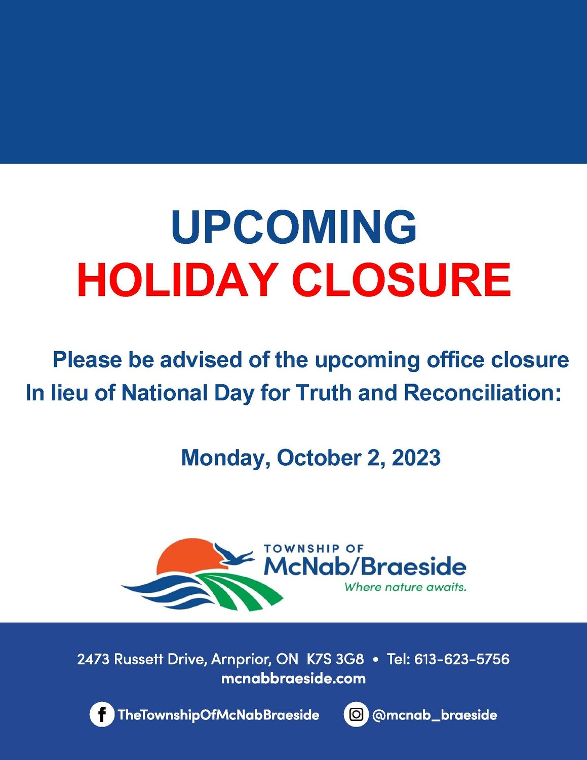 Office Closed in lieu of National Day for Truth & Reconciliation (2023)