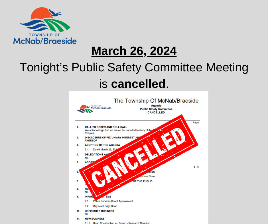 The Public Safety Committee Meeting that was scheduled for tonight (March 26, 2024 at 6:00 p.m.) has been cancelled. We apologize for the short notice.