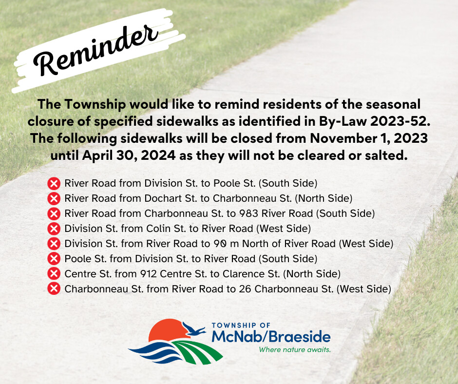 Sidewalk Closure - November 1, 2023 - April 30, 2024