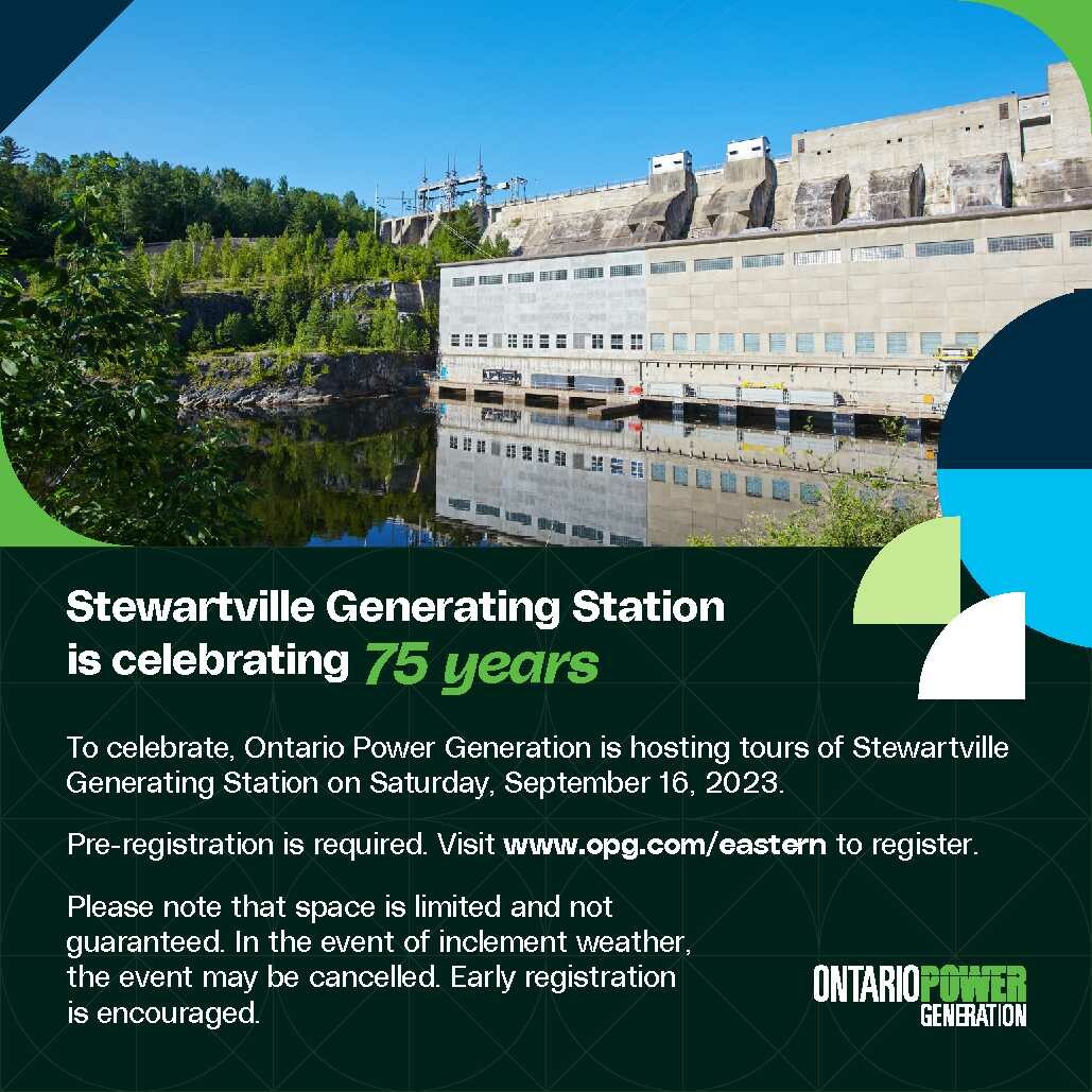 To celebrate, Ontario Power Generation is a hosting tours of Stewartville Generating Station on Saturday, September 16, 2023.