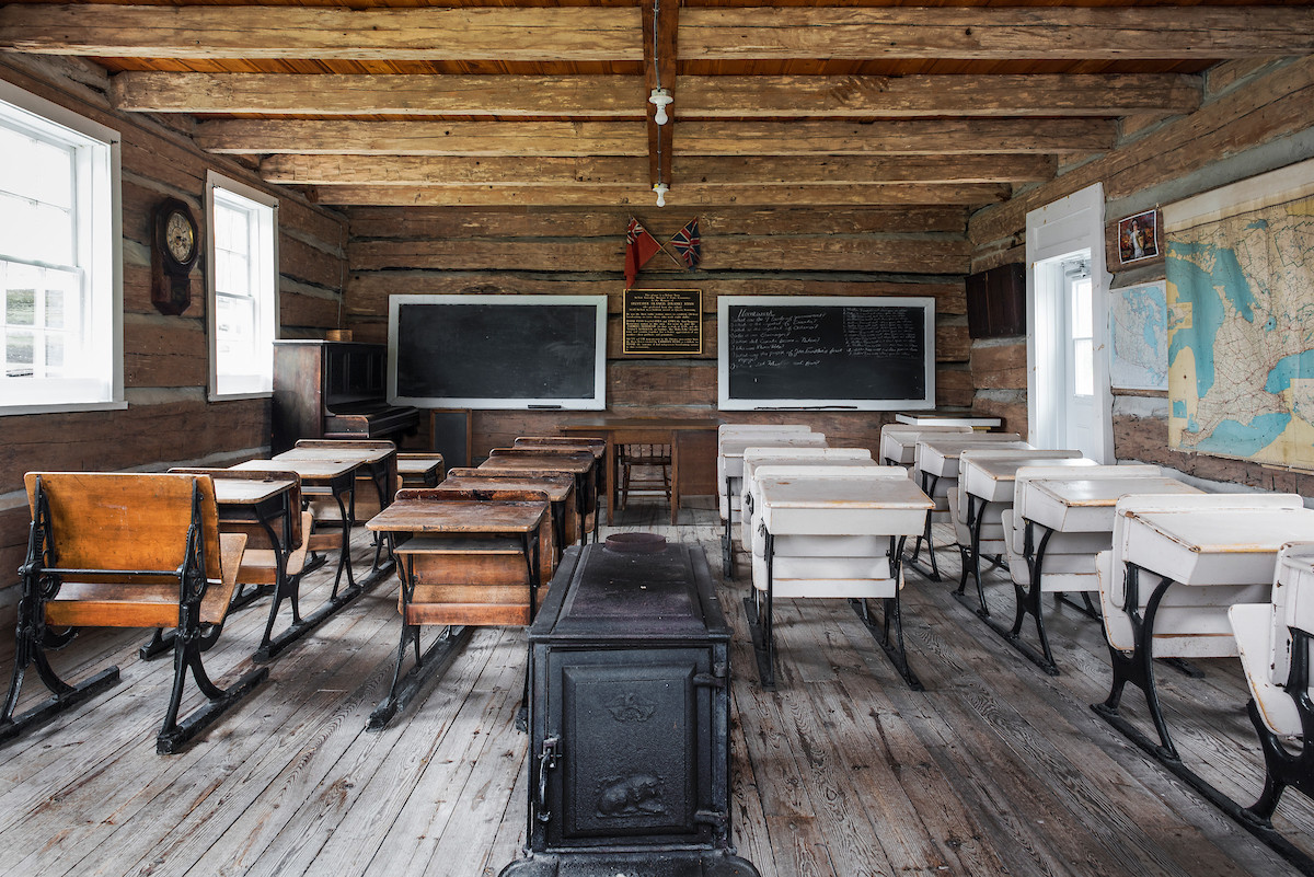 In the early 20th century, schools were often one room, with students of various ages and grades all being taught together. The only heat source would have been a wood-burning stove in the back of the room. It was the responsibility of the teacher and students to maintain the school, including getting wood for the stove and fetching drinking water.